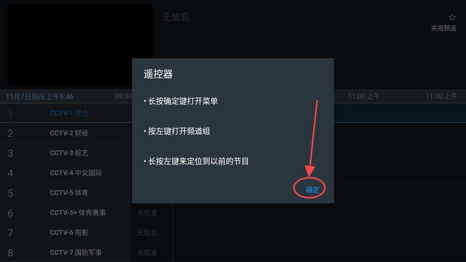 4、此时界面上会显示遥控器的详细按钮说明,点击“确定”按钮就行。