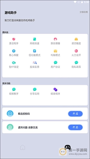 3、游戏助手有很多辅助功能,如换处理器,调灵敏度之类的。