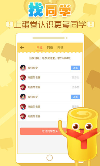 专为小学生打造的聊天交友应用《爱蛋卷》,是一款绿色健康的专属社交软件。在这里,你可以轻松结识同一地区不同学校的小伙伴,让交友变得更简单、更便捷!