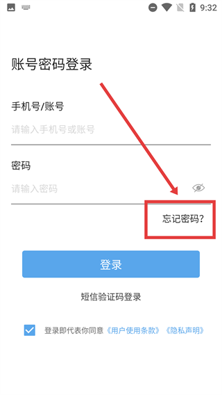 3、在【账号密码登录】页面,要是记不起登录密码了,可以点击页面上的【忘记密码?】选项,开启密码找回的流程。