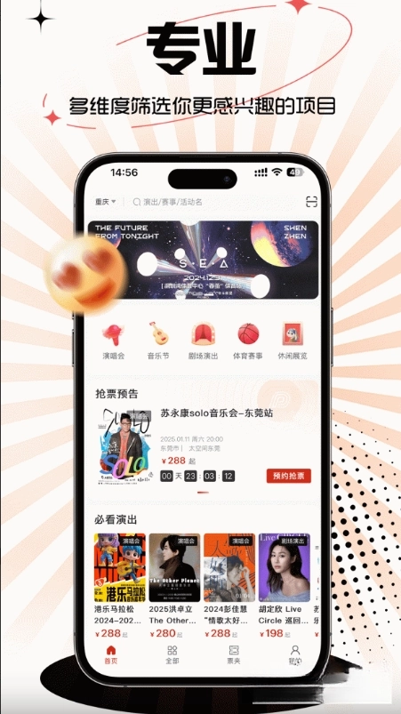 你可以直接输入演唱会、音乐节或者剧场演出的名称来进行精准搜索,平台会迅速匹配对应的票源,这样就不用在大量内容里翻找了,能大大提高找票的效率。