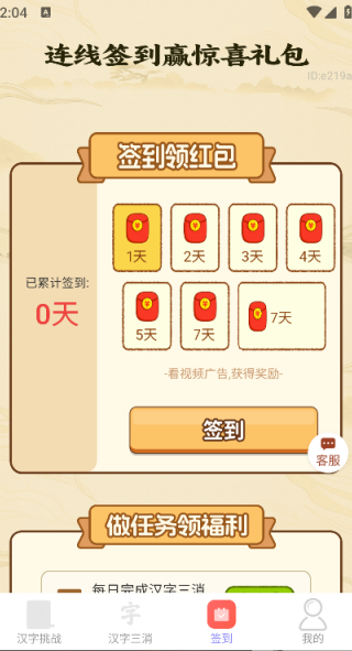 3. 点击页面下方的“签到”按钮,就能完成签到领取红包,也可以通过完成任务来获取福利。