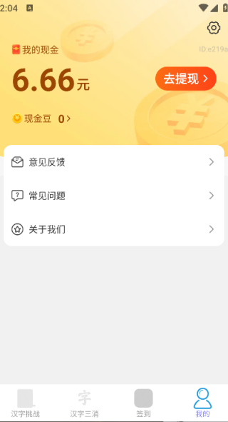 4. 点击页面底部的“我的”选项,就能看到我的现金、意见反馈、常见问题等功能入口。
