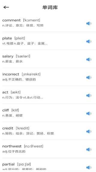 2、进入单词库,了解每日单词背诵内容,轻松跟读。