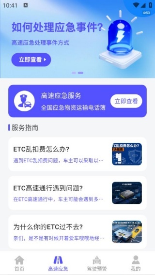 3、提供高速应急事件快速处置服务,涵盖全国应急物资运输联络电话簿以及各类ETC问题的解决办法。