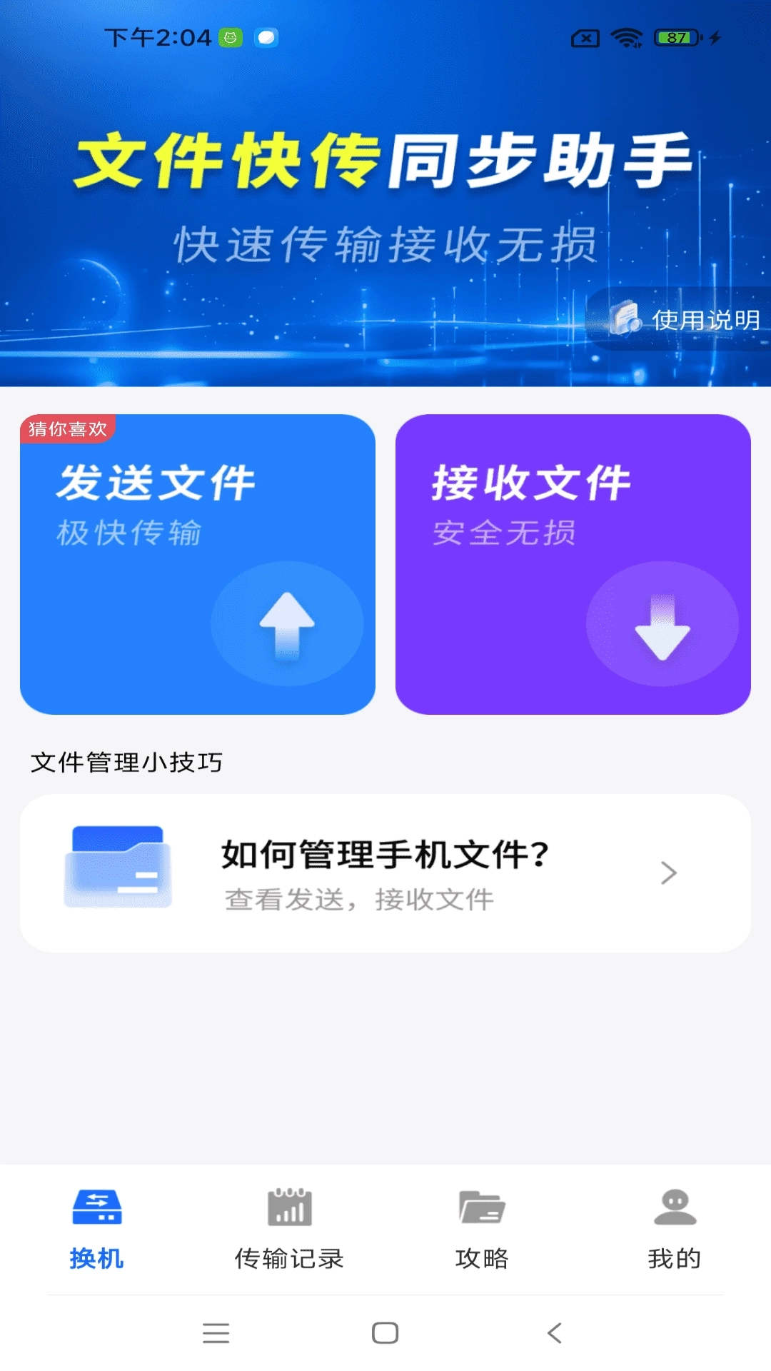 文件快传同步助手是一款安全可靠的文件传输软件,通过本软件,可无损传输或者是接收文件,极快传输值得大家信赖,有文件管理小技巧,可查看传输记录,让大家先换新机的时候,可快速把旧手机中的所有数据传输到新手机当中。
