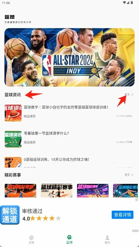 篮球资讯板块的精品推荐标签,点右侧更多。