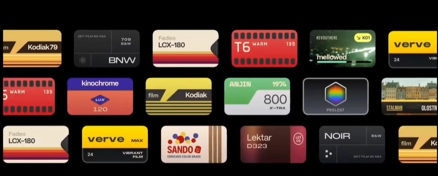 实时调色功能配备十余种电影级预设,在拍摄前就能预览并应用这些效果,省去了后期调色的步骤。
