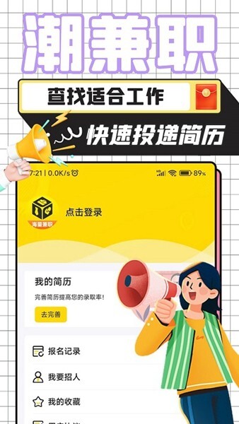 *专业平台服务:为用户提供涵盖岗位推荐、个人简历、在线沟通等功能的专业化平台服务,助力用户更快速、精准地找到心仪的兼职工作。
