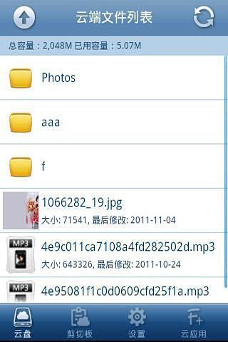 云盘是一款专注于Android平台手机个人文件信息管理与服务的应用,凭借后台强大的云计算平台,可完整备份您的个人文件,让您无需担心信息丢失,还能为您提供及时、高效的信息同步服务。官方网站:http://disk.fezo.com.cn