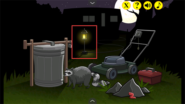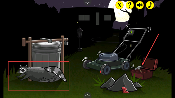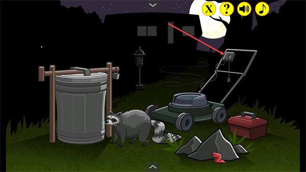 3、点击场景里的【割草机】,触发机关互动,以此改变场景内物品的状态,为后续的操作做好准备。