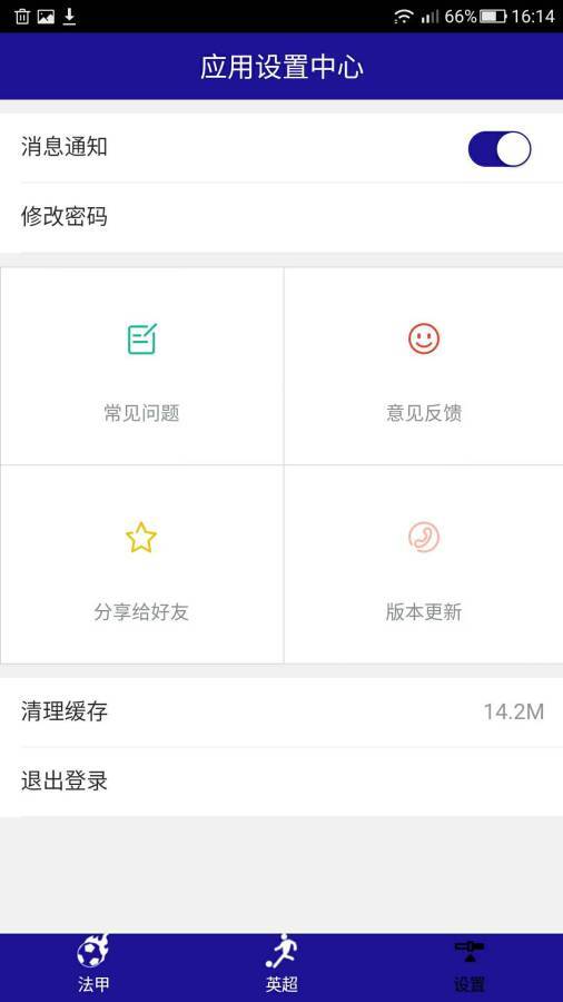 2、系统设置。包含版本更新、消息通知、意见反馈、清理缓存等功能。