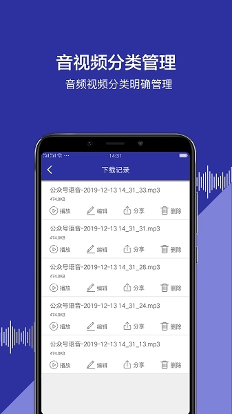 公众号语音:这是一款能够各种音频资源的,各种音视频资源都会轻松管理,还能记录大家的历史记录,快速的将音频文件进行导出,还能编辑音频格式,对音频文件快速的分类,转换音频格式,让音频变得更加清晰。