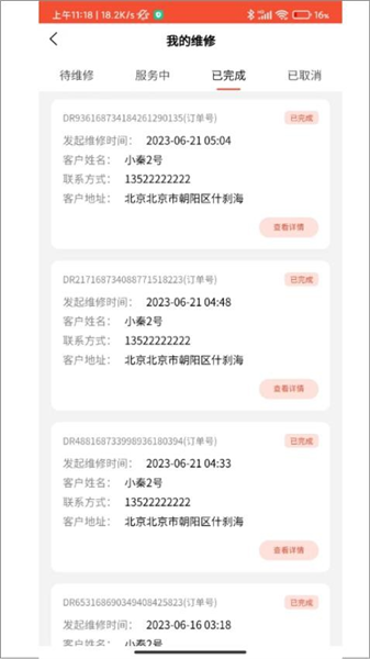 4、用户可以在订单中心查看到各种订单的详情信息;