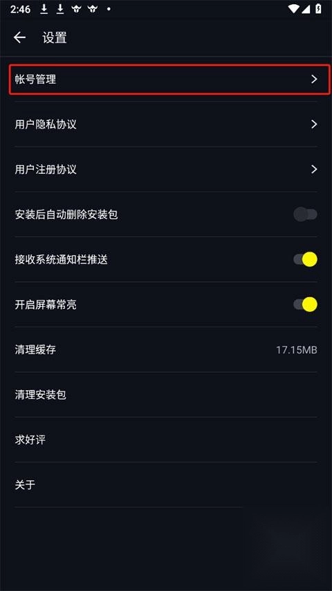 选择账号管理