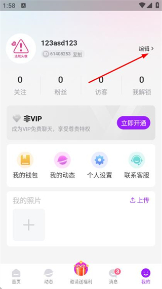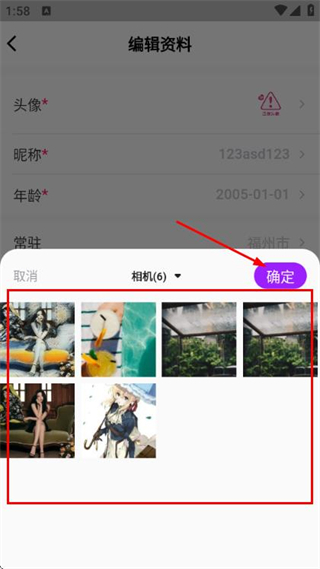 3、进入编辑资料页面后,点击头像相关选项,即可打开图片选择界面。