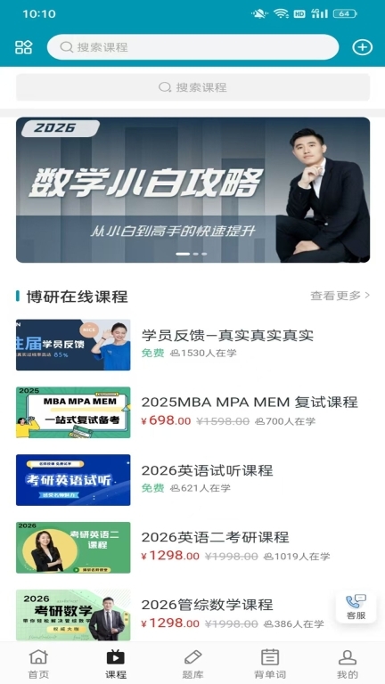 1、首页对课程分类、直播入口、个人学习中心等核心功能板块进行了清晰划分。平台课程资源十分丰富,覆盖考研备考、职业资格证书培训、职场技能提升等诸多领域,能够满足不同用户群体的多样化学习需求。