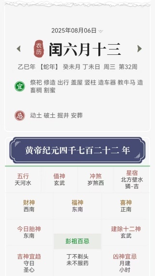 3、配备老黄历功能,各类禁忌信息清晰呈现,助力用户更合理地规划行程。