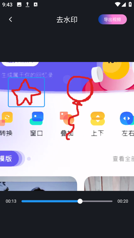 2、挑选要处理的视频,用框选工具选中水印部分,点击右上角的“导出视频”按钮就可以了。