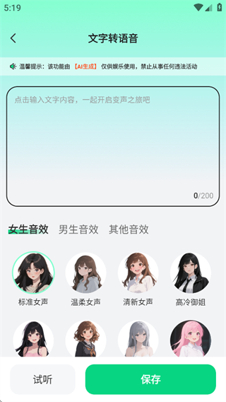 进入后即可看到各种变声模板和语音包库。