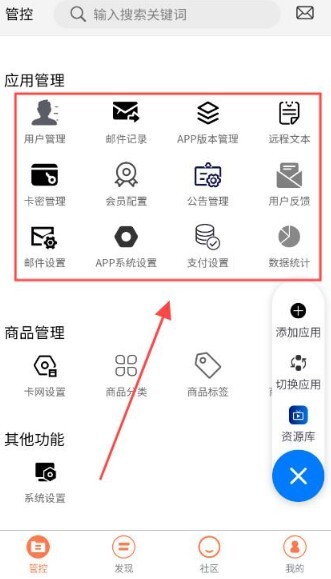 用户系统、卡密系统、邮件系统、代理系统、应用版本迭代、公告、小商城、云函数、数据源等模块