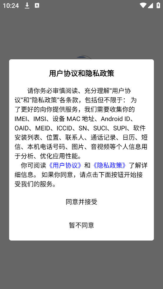 1、能够直接使用最新版本的软件,进入时需要先同意隐私权限。