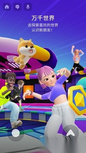 2.接下来我们就要进入主题公园内部了,左下角的虚拟摇杆是用来操控人物移动的,下方的输入栏可以让我们和其他用户交流,当然,我们也能通过手势的方式与他人互动。