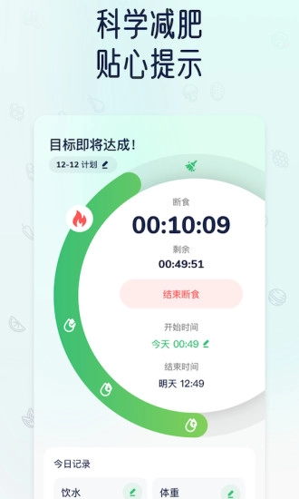 具备断食、体重、饮水量、饮食等数据的记录功能,能清晰查看身体每日的变化情况