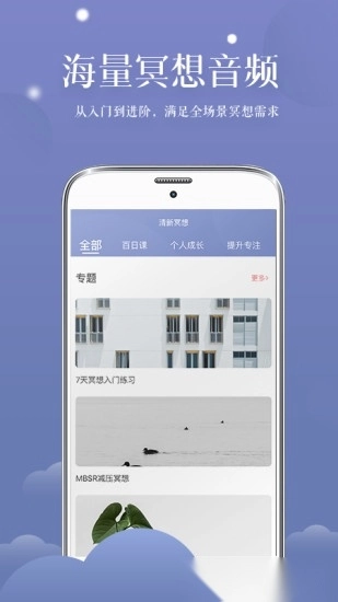 涵盖了冥想音乐、个人成长、减压、改善睡眠、情绪管理、练习、自然音、国乐等多种类型的冥想音频内容,从入门到进阶,满足用户的全场景冥想学习需求。