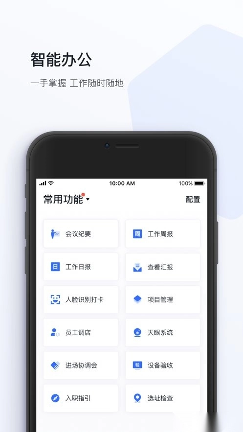 通知、考勤、流程审批、任务管理、移动报销、工作轨迹、工作汇报、日程提醒、在线聊天