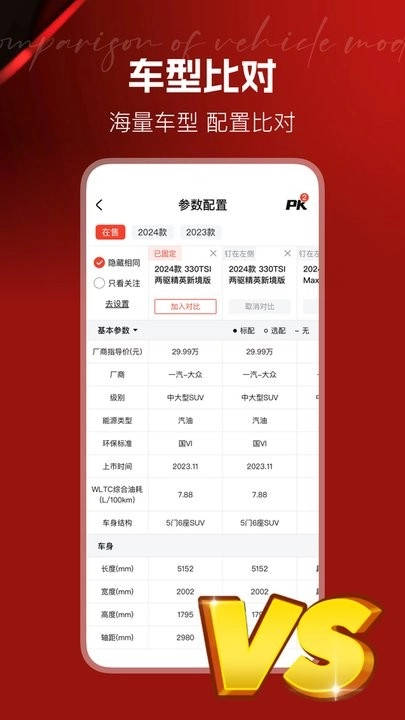 车型比对,海量车型,配置比对。