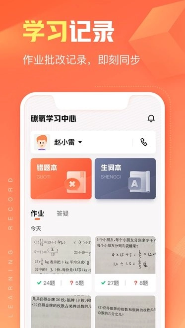 孩子在设备上收藏的错题难题能同步至App,借助3亿大数据题库,作业帮智能App可协助家长智能剖析题目的解析与知识点,便于家长为孩子管理错题并制定复习计划。孩子不认识的中英文单词可以收藏到生词本,家长能够知晓孩子语言学习的难点,从而针对性地帮助孩子温习。
