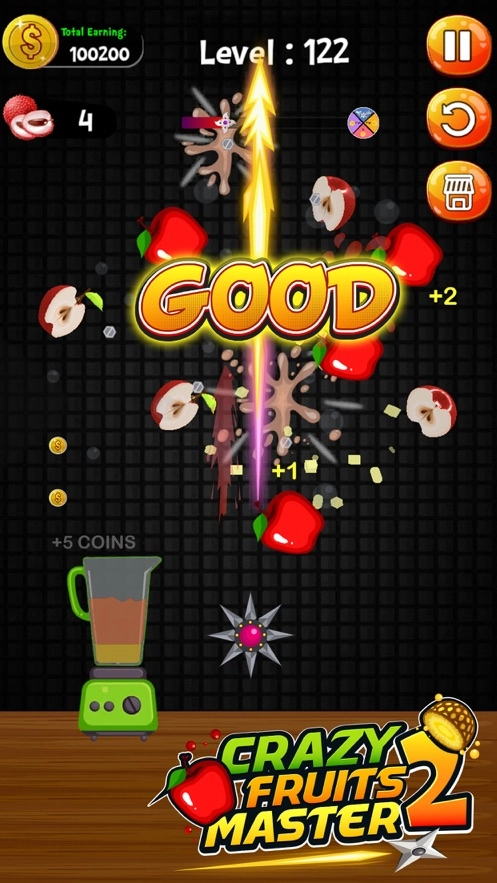 1、疯狂水果大师游戏,操作容易上手,在水果掉落之前快速将其砍成两半;
