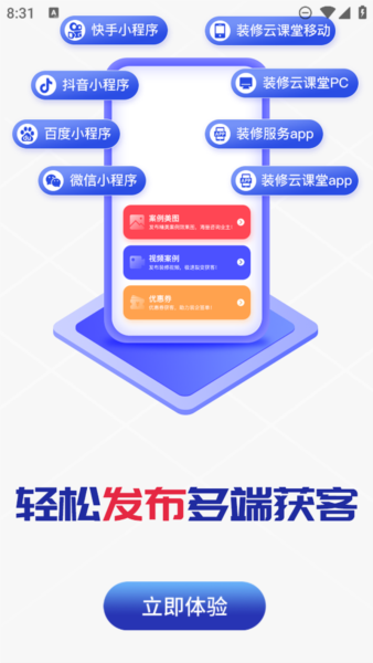 宁夏乾方策网络有限公司推出的“装企客源引擎”,是一款实用的获客工具,能帮助装企获取更多潜在客户,为促成订单、提升工作效率筑牢基础。它支持便捷的营销推广操作,用户可随时查看详细的获客数据,还能发布或获取最新活动线索;平台内更有丰富的获客干货内容,助力从业者提升专业能力。此外,软件能帮助商家在打造优质品牌口碑的同时,精准触达并转化高品质签约客户,实现“口碑”与“客户”的双重收获;系统还会根据用户兴趣推送装修方案及优惠活动,让潜在客户快速了解服务优势。有需求的装企朋友不妨一试!