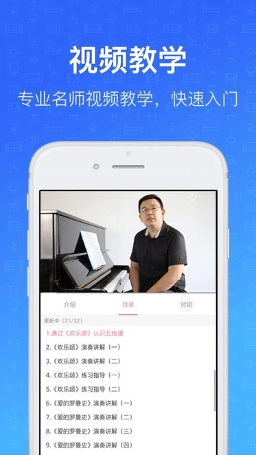 钢琴入门必备!您的钢琴学习贴心小助手,24小时随身智能钢琴教练!连接电钢琴,轻松开启练习之旅!权威音乐类排行榜榜上有名!更有专业钢琴老师通过视频为您答疑解惑。