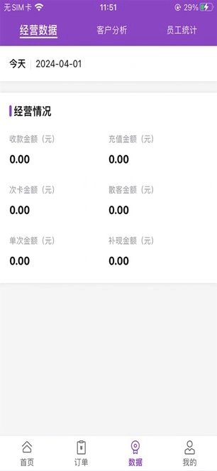 2.员工的使用权限由老板端开通,不同权限对应不同功能,可用于查看订单、业绩、客户信息以及进行开单收银操作。
