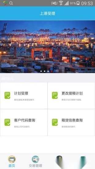 上港理享+是网上受理系统的手机端版本。上港集团网上受理平台作为受理中心的线上窗口,为客户提供提箱计划办理、查验计划办理、箱货查询等服务,客户能够随时随地办理、查询或修改业务,还可直接接收海关、国检、理货、放箱、换单等电子信息,无需在海关、码头计划受理点与码头查验点之间往返奔波。