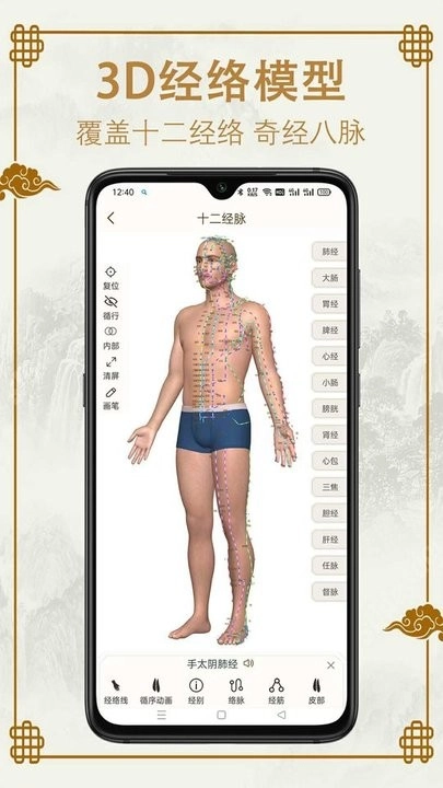 借助3D模型呈现人体的经脉与穴位,深度剖析每条经脉的生理功能及临床价值。