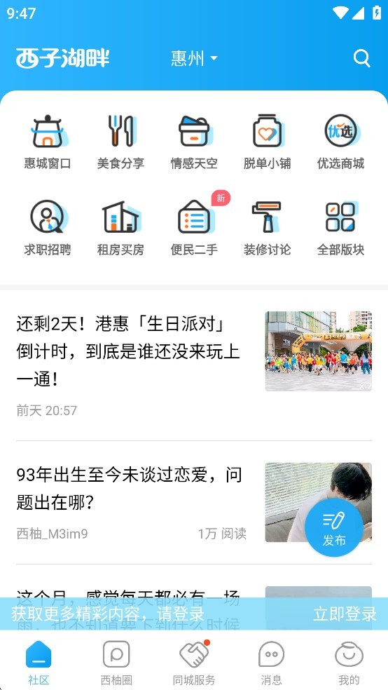 惠州市西子湖畔网络有限公司推出了一款名为“西子湖畔”的本地生活服务一站式平台,专注服务惠州本地市民。平台整合了城市时事新闻、便民服务指南、休闲娱乐推荐等多元信息,同时联合本地商户发放海量优惠券,让市民的吃喝玩乐更省钱、更便捷。此外,平台设有交友专区,无论是想结识同好还是寻找脱单机会,都能通过发帖互动轻松实现。惠州的朋友们,不妨来体验一下吧!