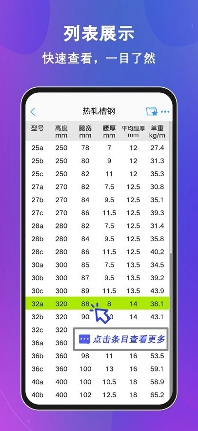 这是一款支持近20种非标及焊接型材自定义计算的软件,它能实现型材尺寸、重量及惯性矩等参数的速查,还可以切换不同单位进行计算,查看详细数据信息,隐藏或显示单位,搜索所需的钢型参数,并计算型材重量等功能。