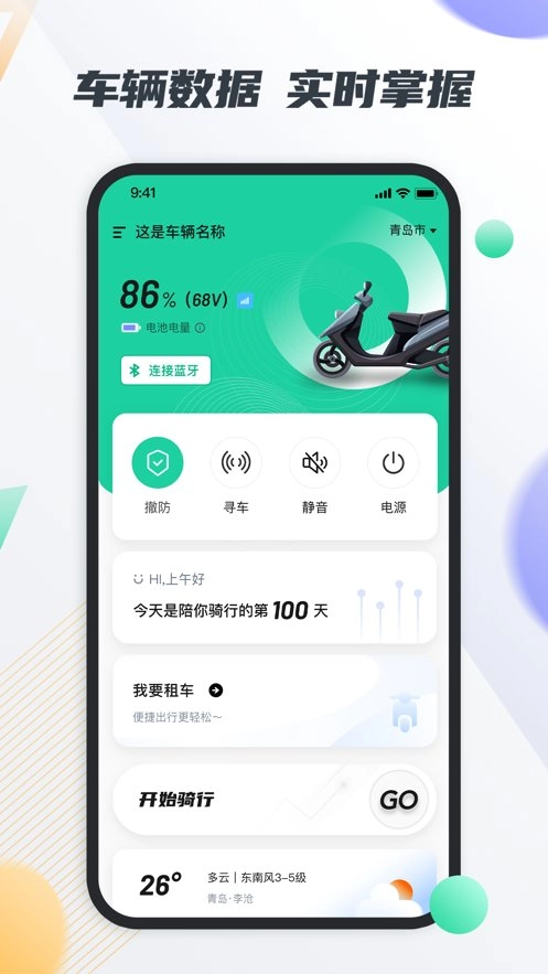 这是一款能让你实时掌握车辆信息的电动车车控软件,只需扫描车身或车锁上的二维码,就能实现智能开锁。你可以随时在线租用所需的电动车,车辆启动后将自动进入计费模式。