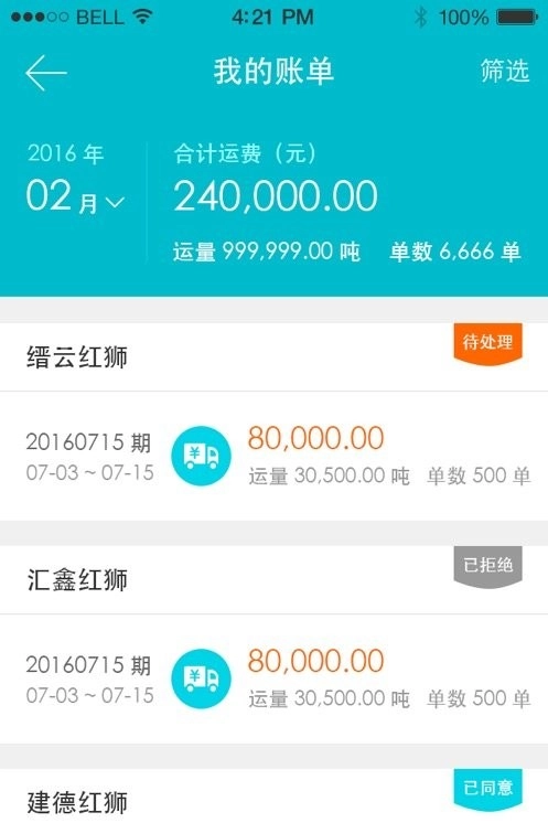 ■ 对账功能:运输完成后,按账期收到对账单。需要确认账单