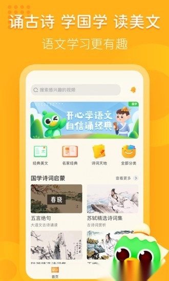 语文趣配音是由英语趣配音出品的一款面向全年龄段用户、助力提升汉语国学素养的软件。它围绕中文热门影视、流行歌曲、课文诗词、经典国学、启蒙故事等多元内容开展配音活动,并搭配精选视频讲解,以趣味短视频的形式,激发汉语学习兴趣,助力养成良好学习习惯,帮助语言学习者精进中文发音与口语表达能力,深入领会汉语的语义与语境,拓宽语言知识的应用边界,同时增进对中华文化的学习与认知。