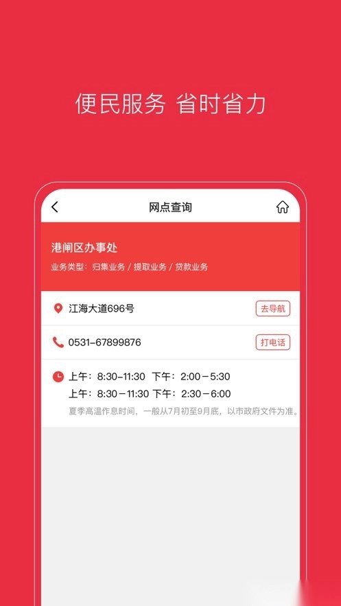 3.网点查询:用户在首页即可查看网点信息,点击后便能跳转到距离自己最近的网点位置。