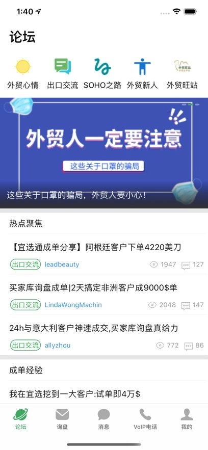【论坛交友】多种性质的论坛都有,用户可以自由关注喜欢的外贸论坛;