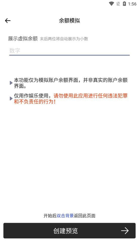 -模拟余额显示:可自定义设置余额数值,避免因“老赖”借钱不还而造成困扰