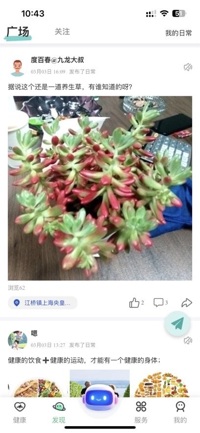 广场圈子:涵盖朋友圈与健康资讯板块,支持用户分享自身健康动态,同时助力大家获取专业科普知识。