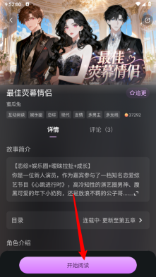 3、进入小说阅读详情页后,点击“开始阅读”按钮就能开启阅读。