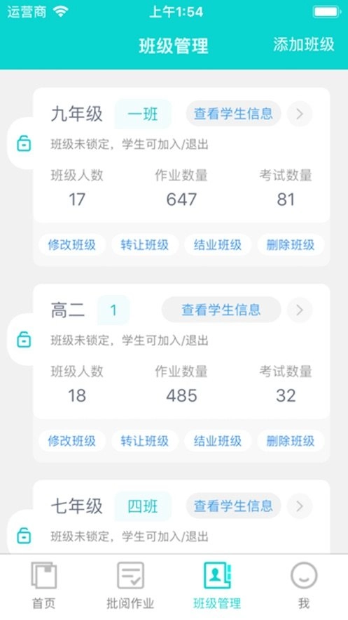 用户能够在软件里创建班级,在班级内可以邀请人员,发布作业与考试,还能记录一些重要信息。