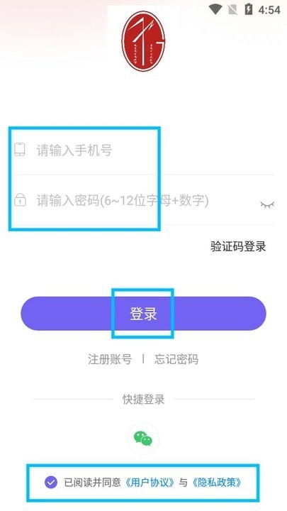 ·请先勾选【已阅读并同意】选项,接着输入手机号码和密码,最后点击【登录】按钮。